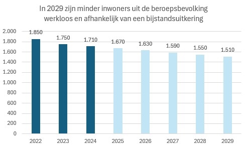 Het aantal inwoners zonder werk dat een uitkering ontvangt in het kader van bijstandswet of bijstand gerelateerde wet tot AOW-leeftijd.