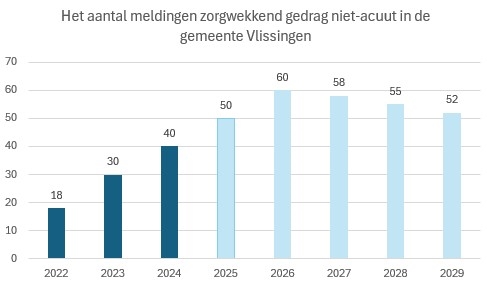 Het aantal meldingen zorgwekkend gedrag niet-acuut in de gemeente Vlissingen
