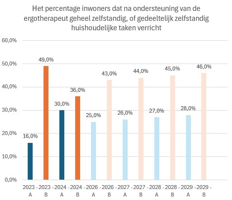 Het percentage inwoners dat na ondersteuning van de ergotherapeut geheel zelfstandig, of gedeeltelijk zelfstandig huishoudelijke taken verricht