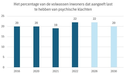 Het percentage van de volwassen inwoners dat aangeeft last te hebben van psychische klachten