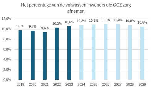 Het percentage van de volwassen inwoners die GGZ zorg afnemen